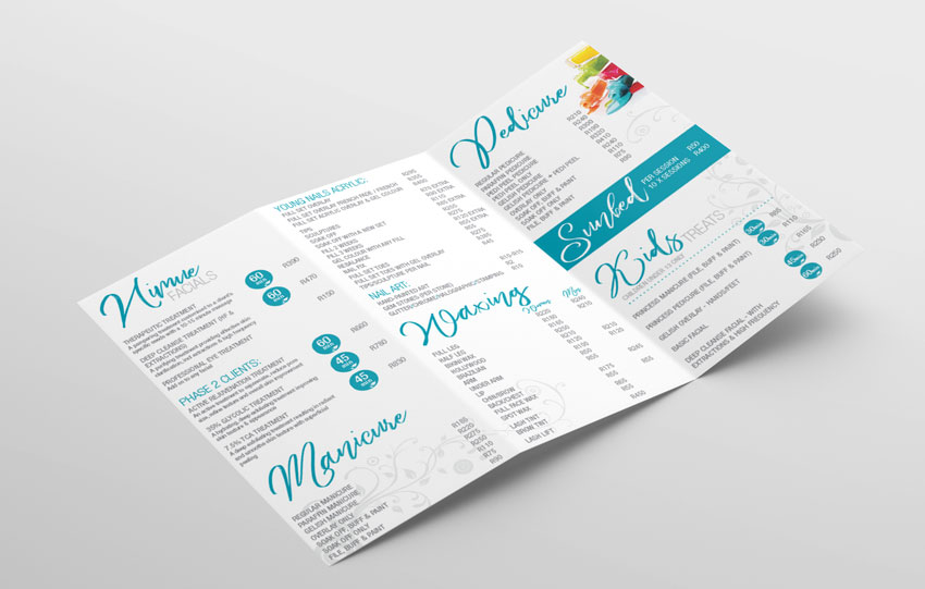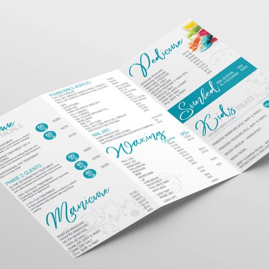Price list design for Eve’s Beauty Salon. Brochure Design Layout Project navigationPreviousPrevious project:Bat Shirt Crazy WebsiteNextNext project:Moo Moo’s Menu