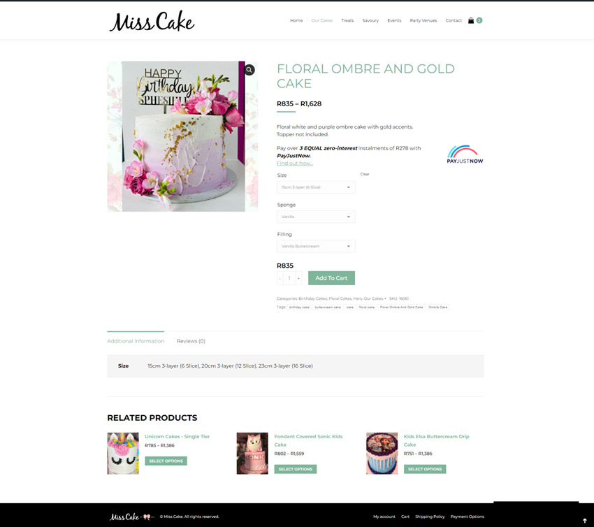 Miss Cake is a cake and treats bakery in Pretoria. They spesialise in everything from birthday cakes to wedding cakes and everything in between.