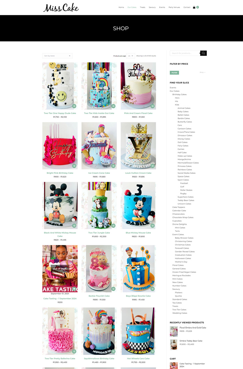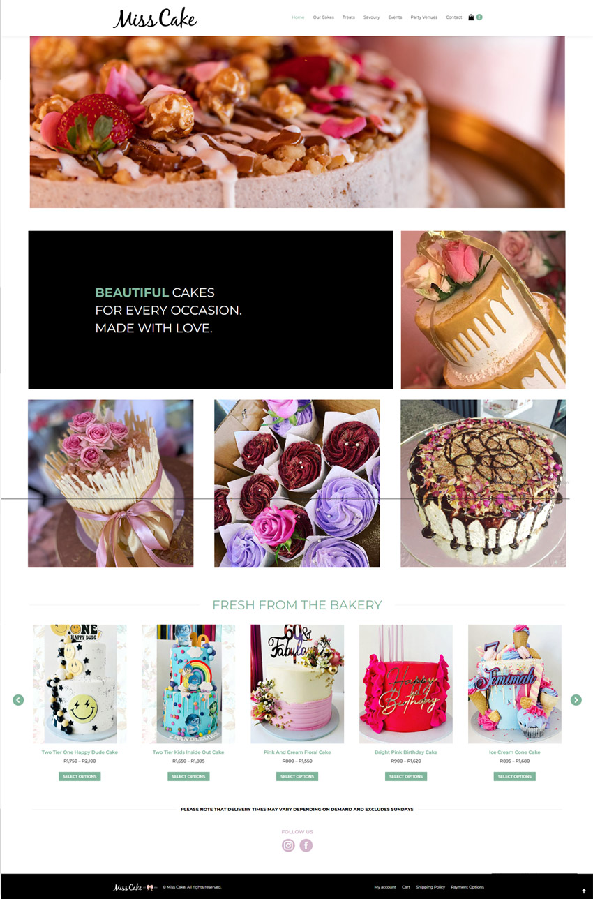 Their need was for an E-Com website where people can order their cakes online for delivery or collection with specific limits regarding the delivery areas etc. The site includes variations on the cakes, different product types as well as events that can be booked online.